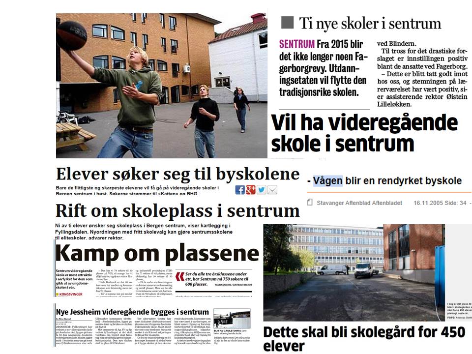Lokalisering, sentrum, nye videregående skoler, skoleanlegg, argumenter, læringSammendrag