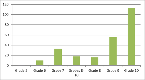 More than half of the textbook pages where LGBT is the main theme (55, to be exact) are in 10th grade. In addition, the fictional texts in English and Norwegian are mostly in 10th grade. Possible explanations can be that textbook writers think that pupils do not need to know this before in 10th grade or that they think that teachers prefer to postpone it as late as possible. In either case, publishers or teachers are delaying far too long an introduction to LGBT issues, given that youth begin developing and exploring their sexual orientation far earlier.