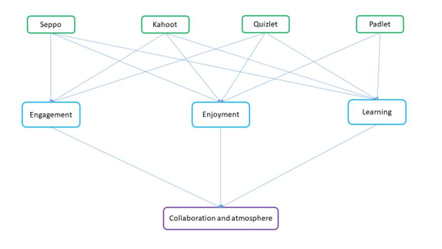 Figure 1 illustrates how the four applications used impacted engagement, enjoyment and learning. Furthermore, the course design emphasised collaboration and a positive, tolerant and emotionally safe atmosphere (Eteläpelto & Lahti, 2008) that, in turn, fosters engagement, enjoyment and learning. All these factors are connected with each other, offering students opportunities to be active learners in a meaningful and fruitful learning environment.